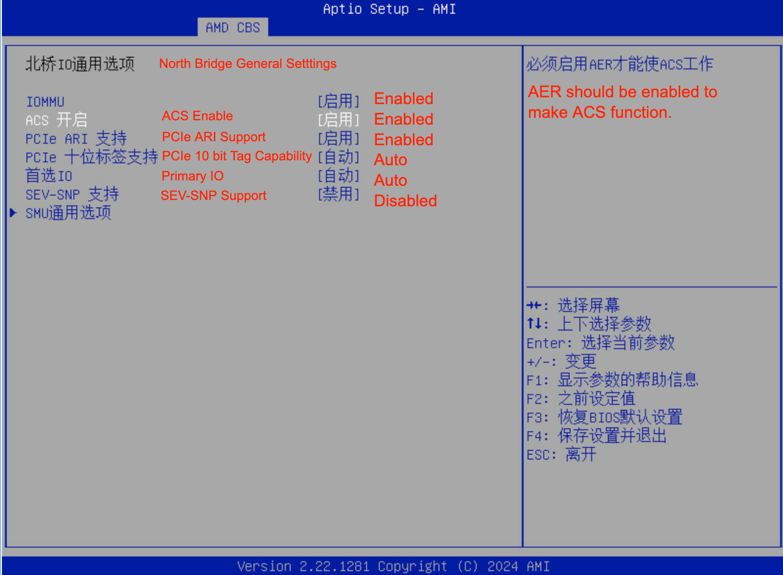 Enables Secure Encrypted Virtualization with Secure Nested Paging. Disable unless explicitly required, as it may cause instability with VFIO on some firmware versions. |