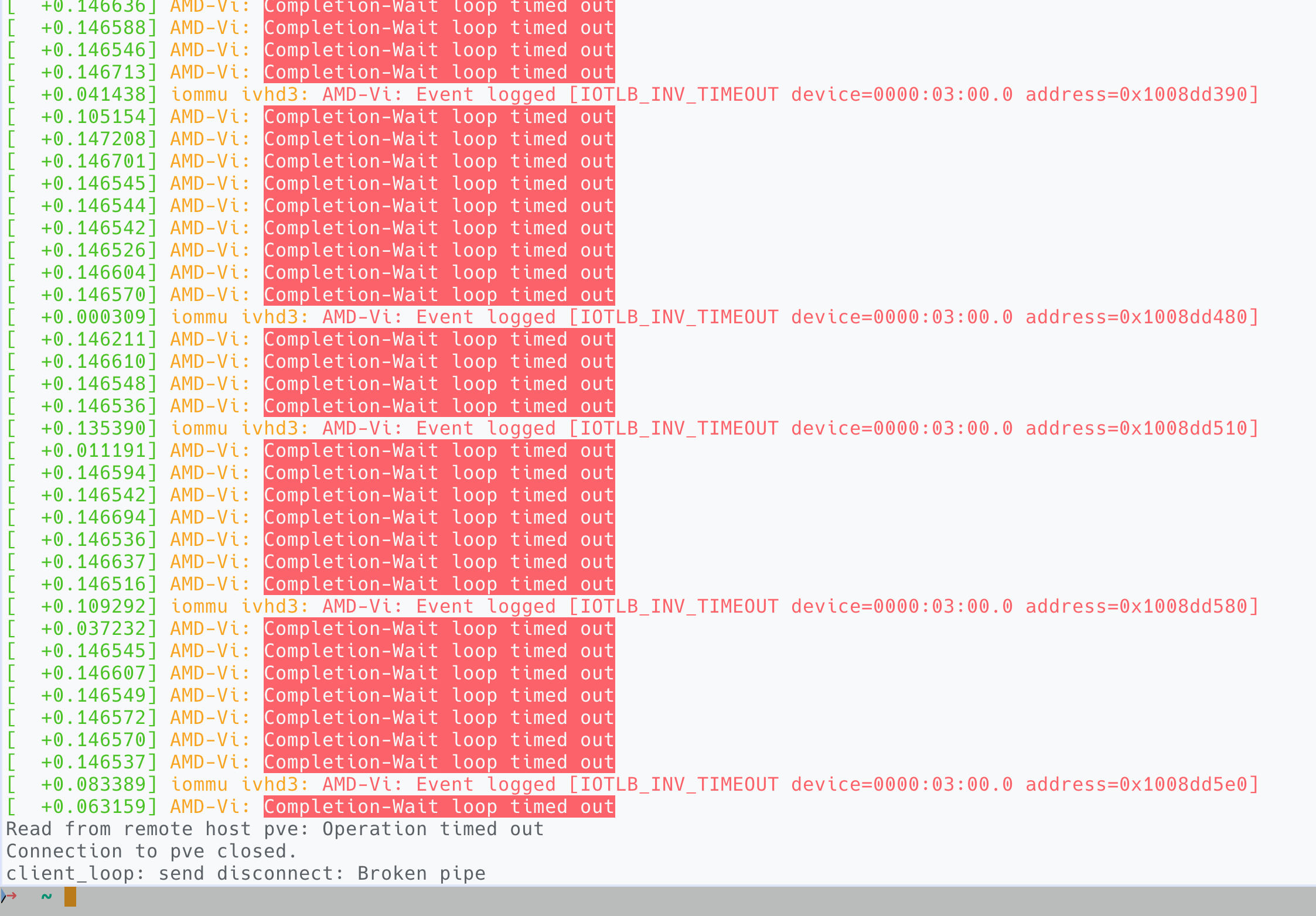 This posts documents how I fixed AMD-Vi: Completion-Wait loop timed out error in kernel log (which then caused a crash). on my proxmox homelab.