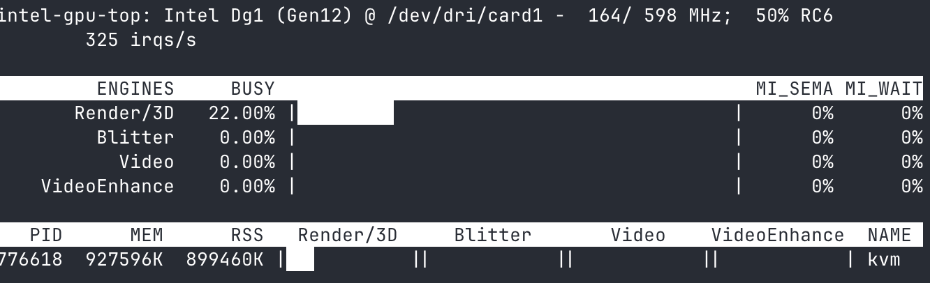 On the host, intel_gpu_top shows ~25% GPU when fighting, with effects default to high and 60fps. I'm using intel SG1, which is designed to handle multiple gaming sessions per card.